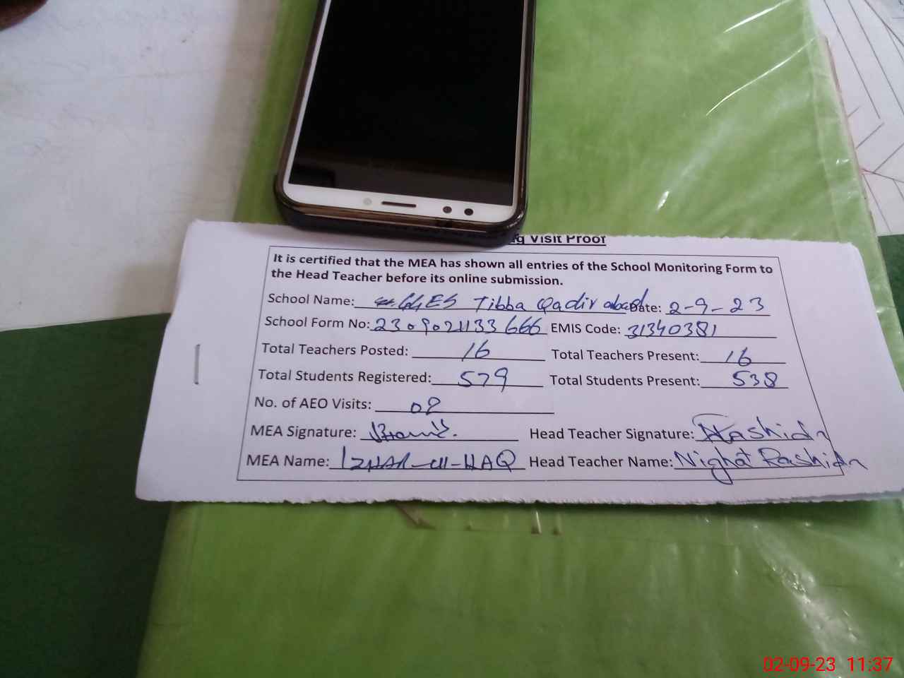 | EMIS Code: 31340381 | Name of School: GGES TIBBA QADIR ABAD | |||
