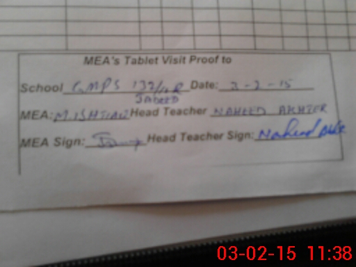 | Attendance Register | Head Teacher | MEA with School | Visit Proof |