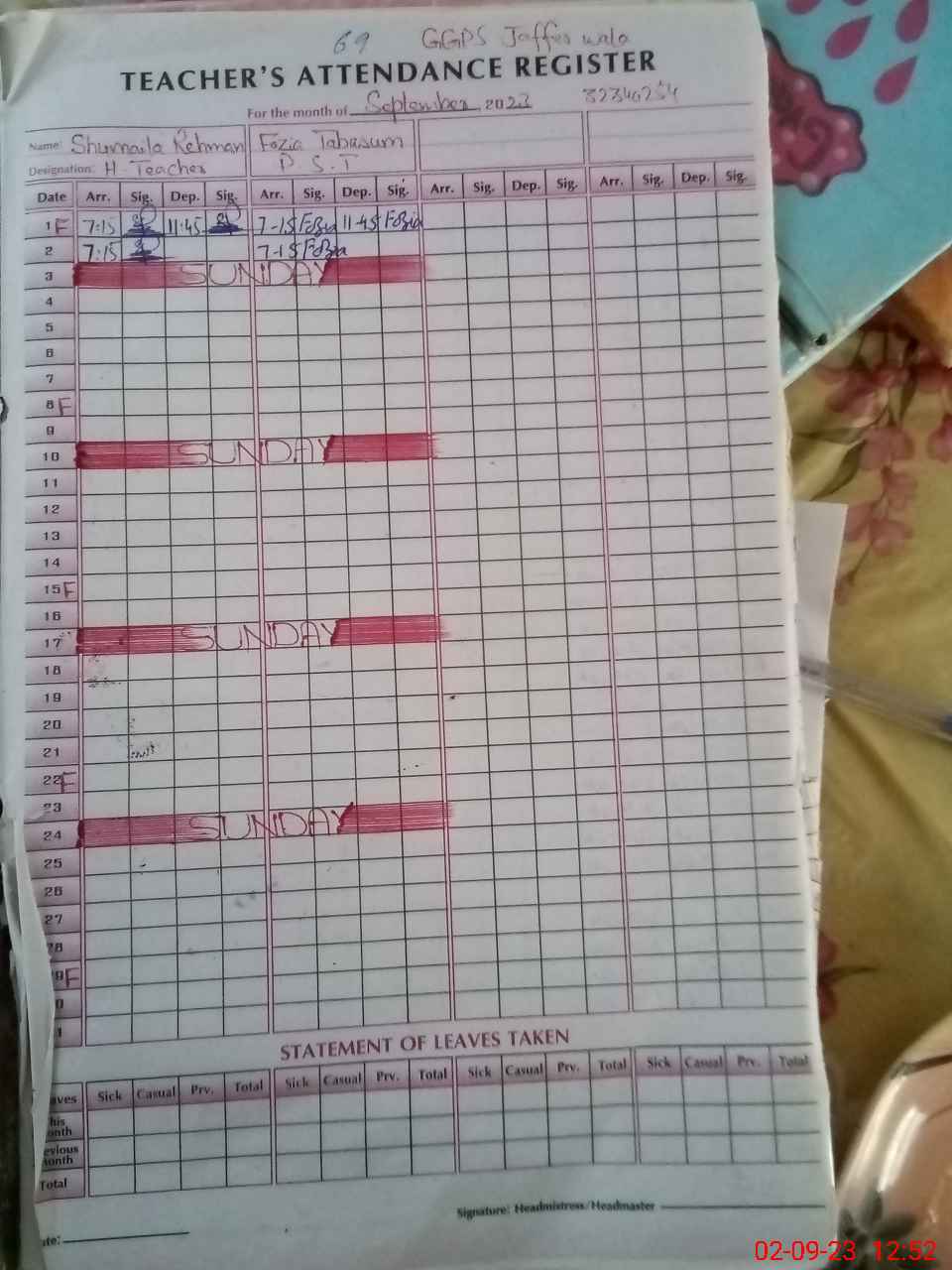 | EMIS Code: 32340254 | Name of School: GGPS JAFFER WALA | |||