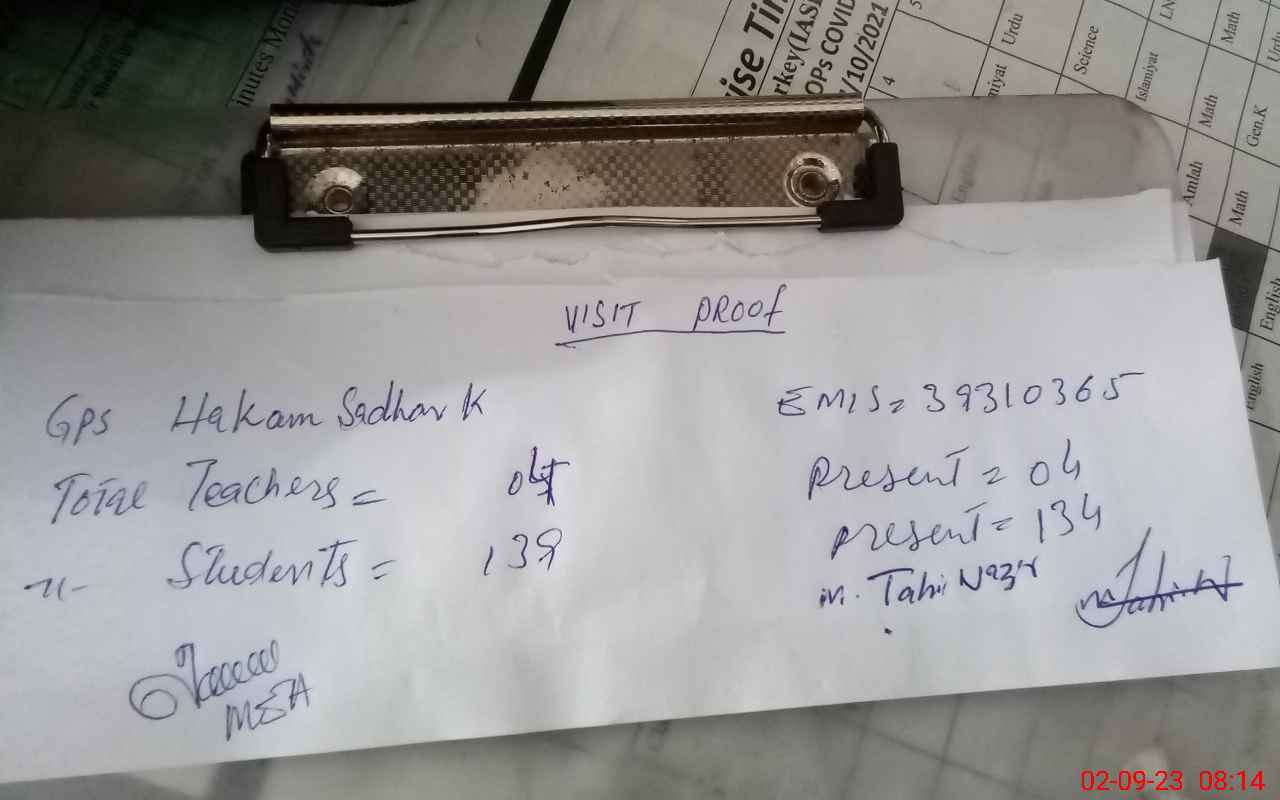 | EMIS Code: 39310365 | Name of School: GPS HAKAM SADHAR KEY | |||