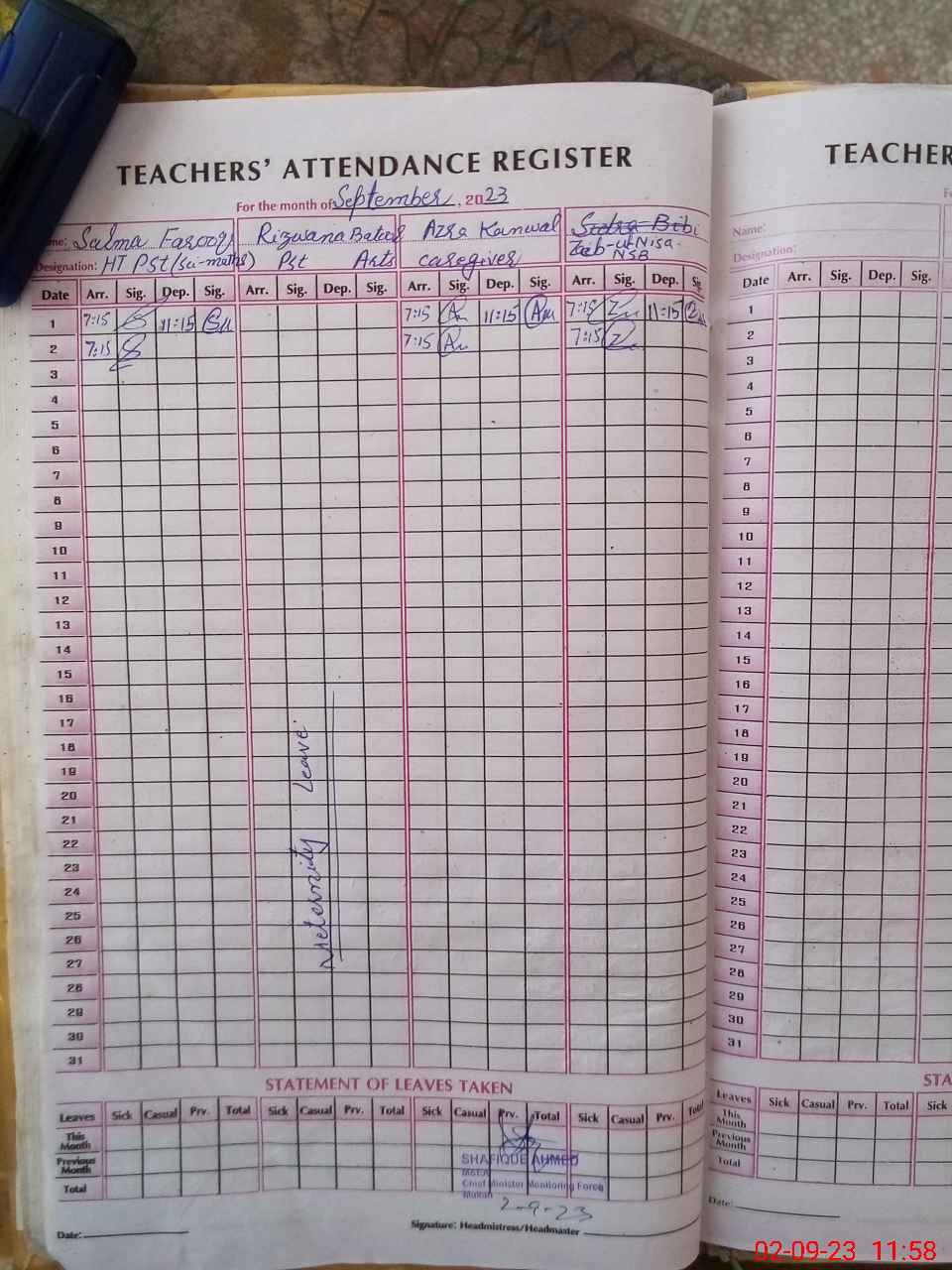 | Attendance Register | Head Teacher | MEA with School | Visit Proof |