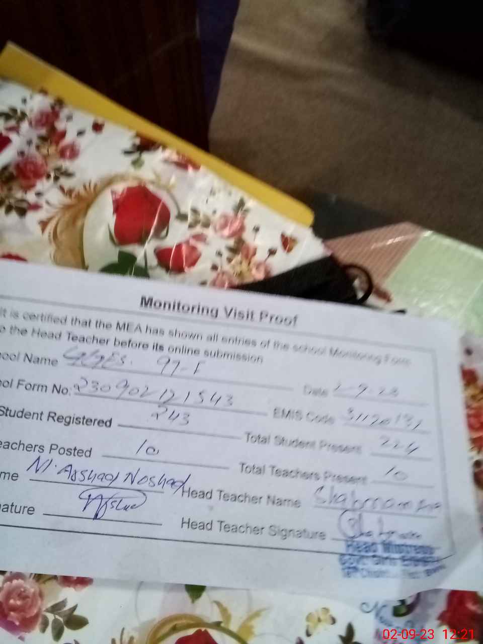 | Certified that this School was Inspected by the Undersigned MEA/DMO Today and the Information Stated Above is as Per Record. | |||||
