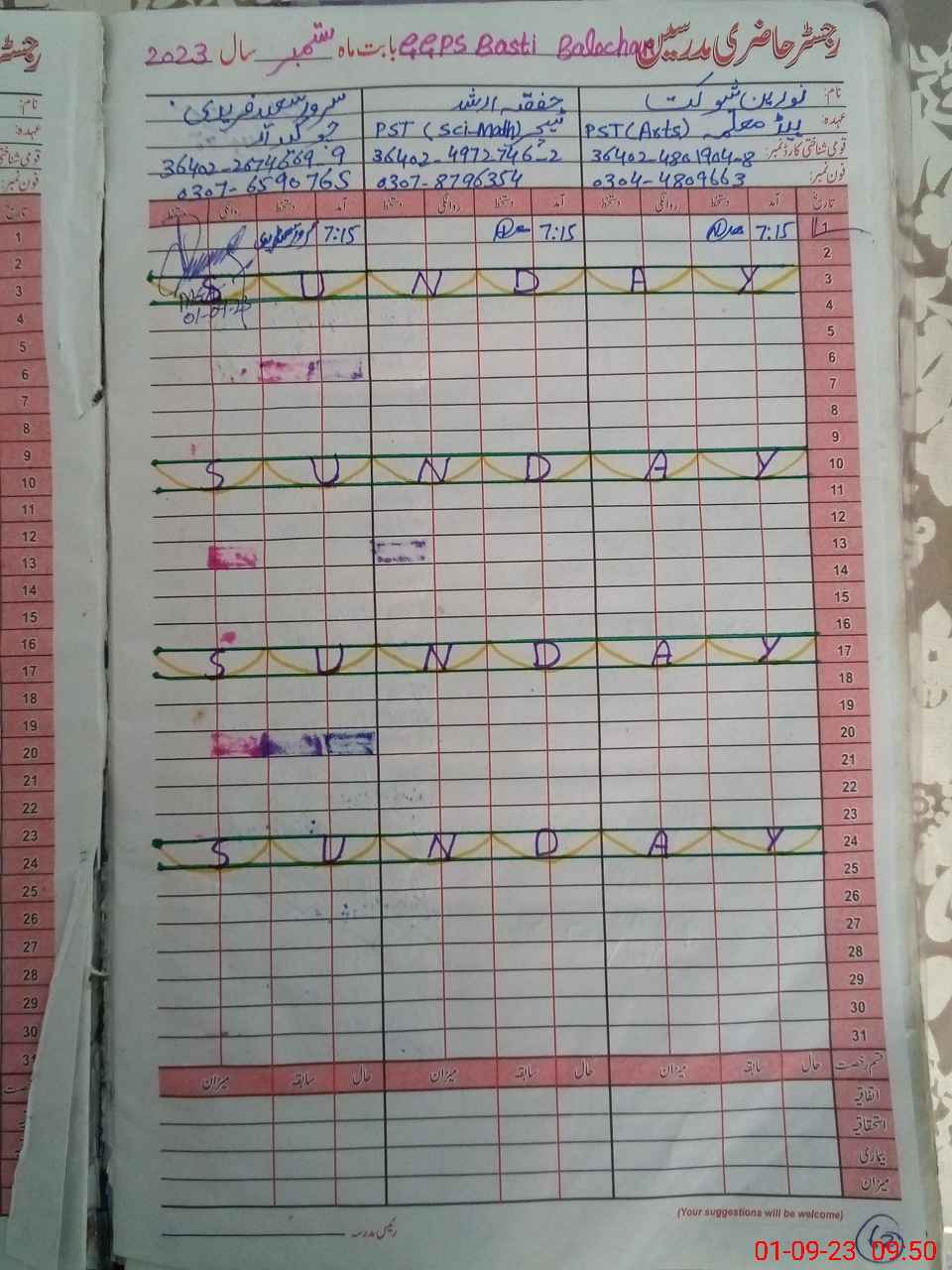 | Name: No**** sh**** Designation: (School Headmaster's/Headmistress's) PST Phone/Cell Number: 03**** |