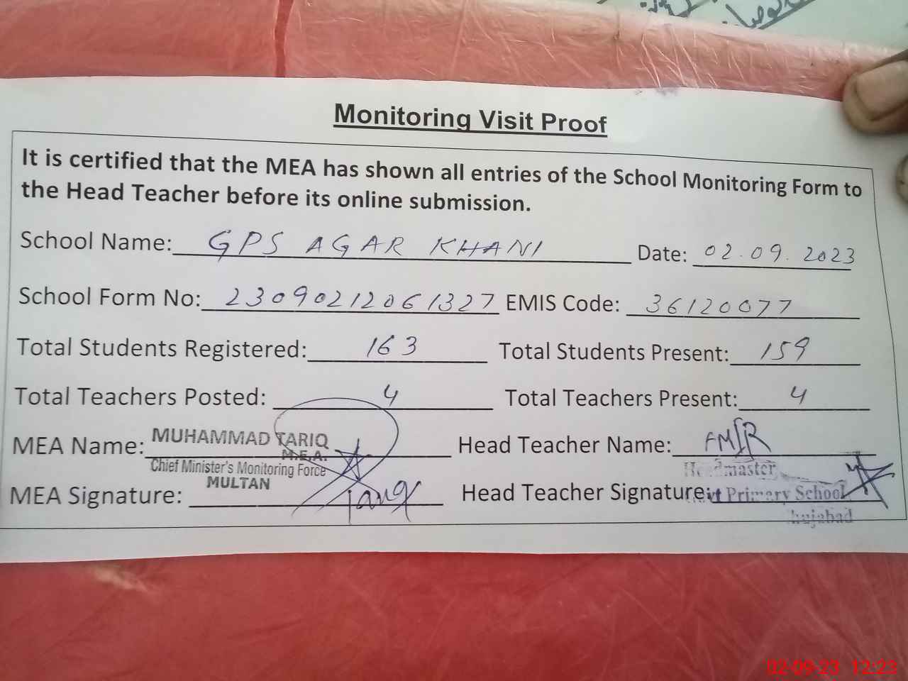 | EMIS Code: 36120077 | Name of School: GPS AGAR KHANI P.O AGAR KHANI MOZA RUKKAN HATI | |||