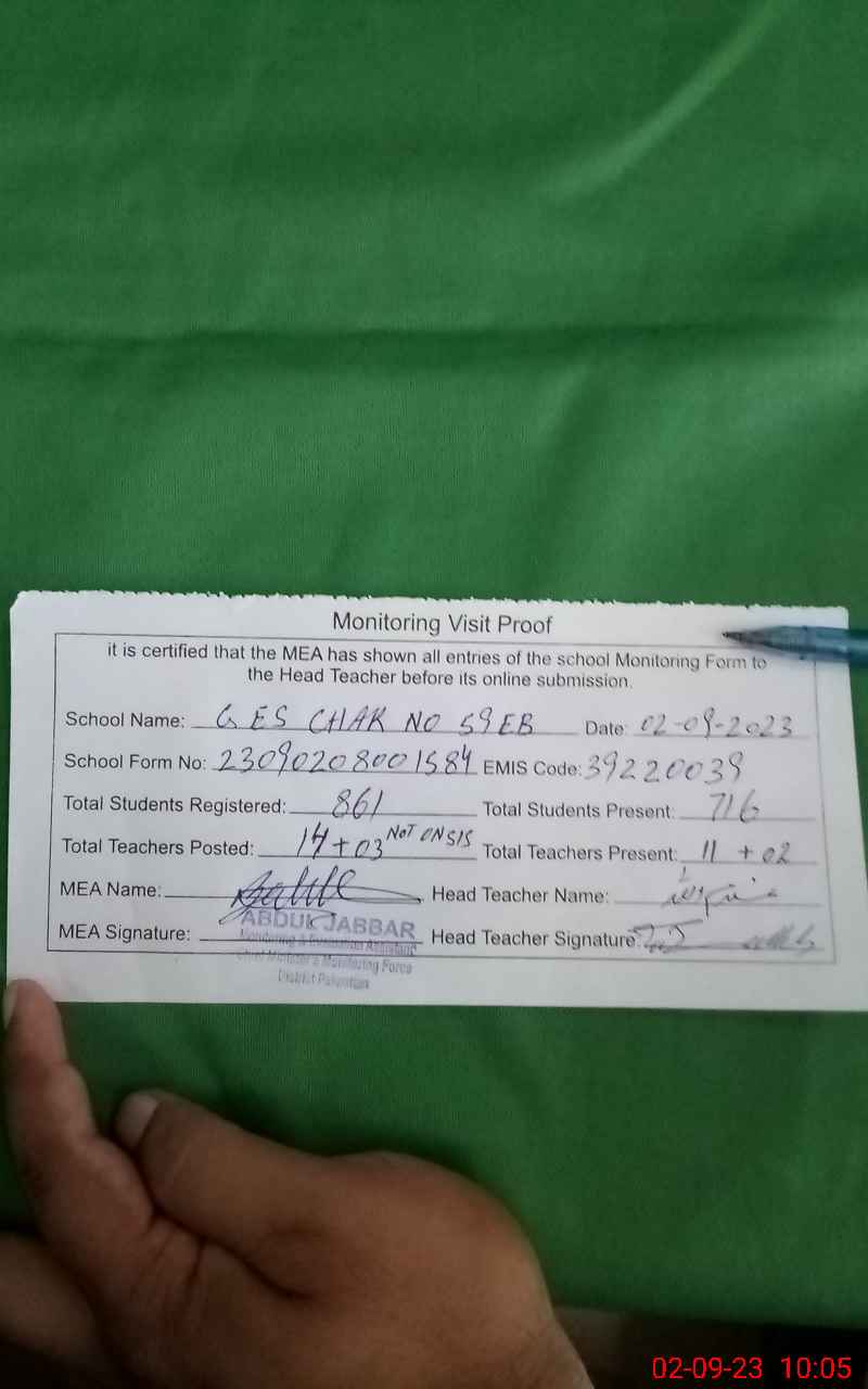 | EMIS Code: 39220039 | Name of School: GES CHAK NO. 59 EB | |||