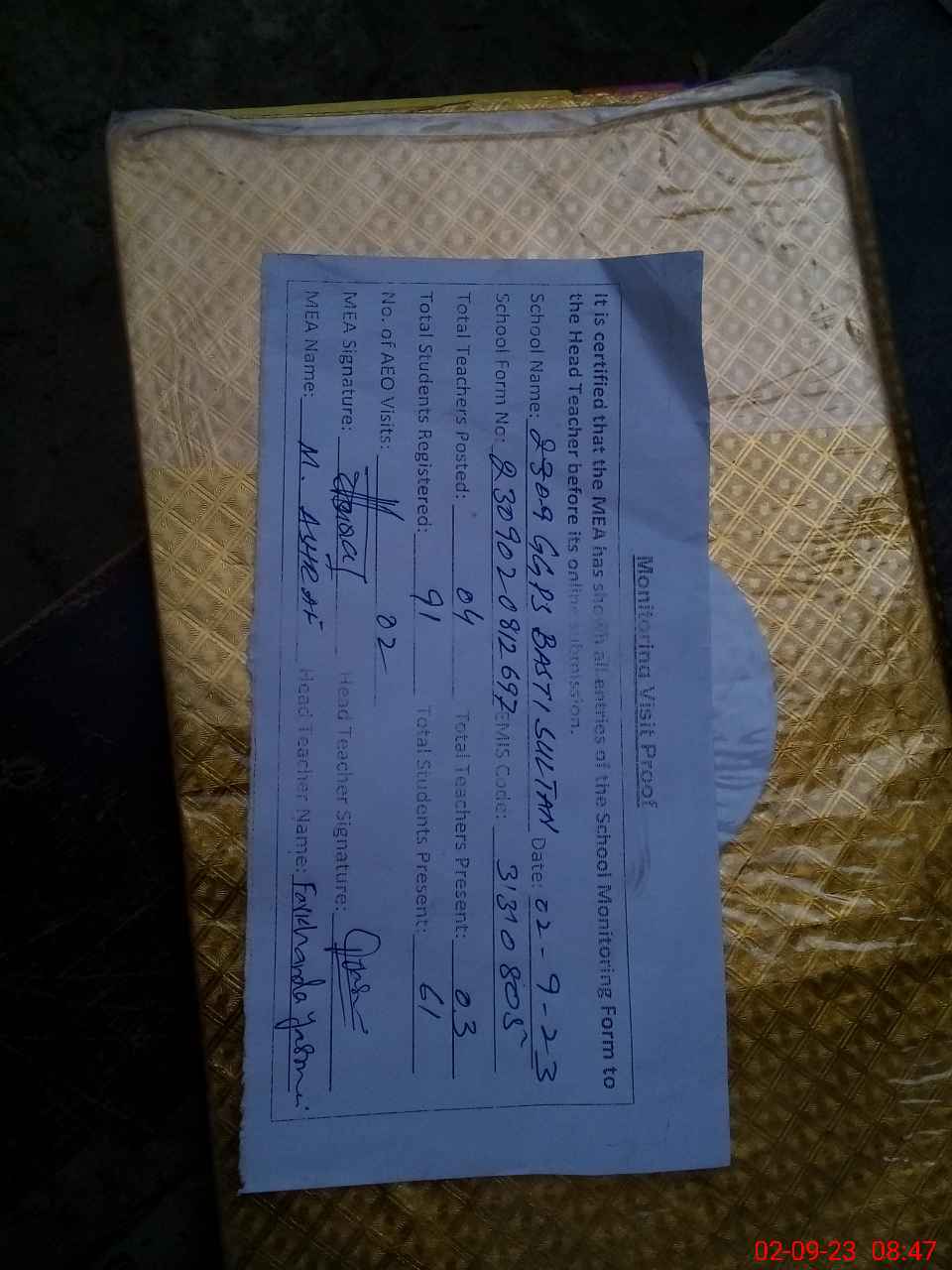 | EMIS Code: 31310805 | Name of School: GGPS BASTI SULTAN | |||