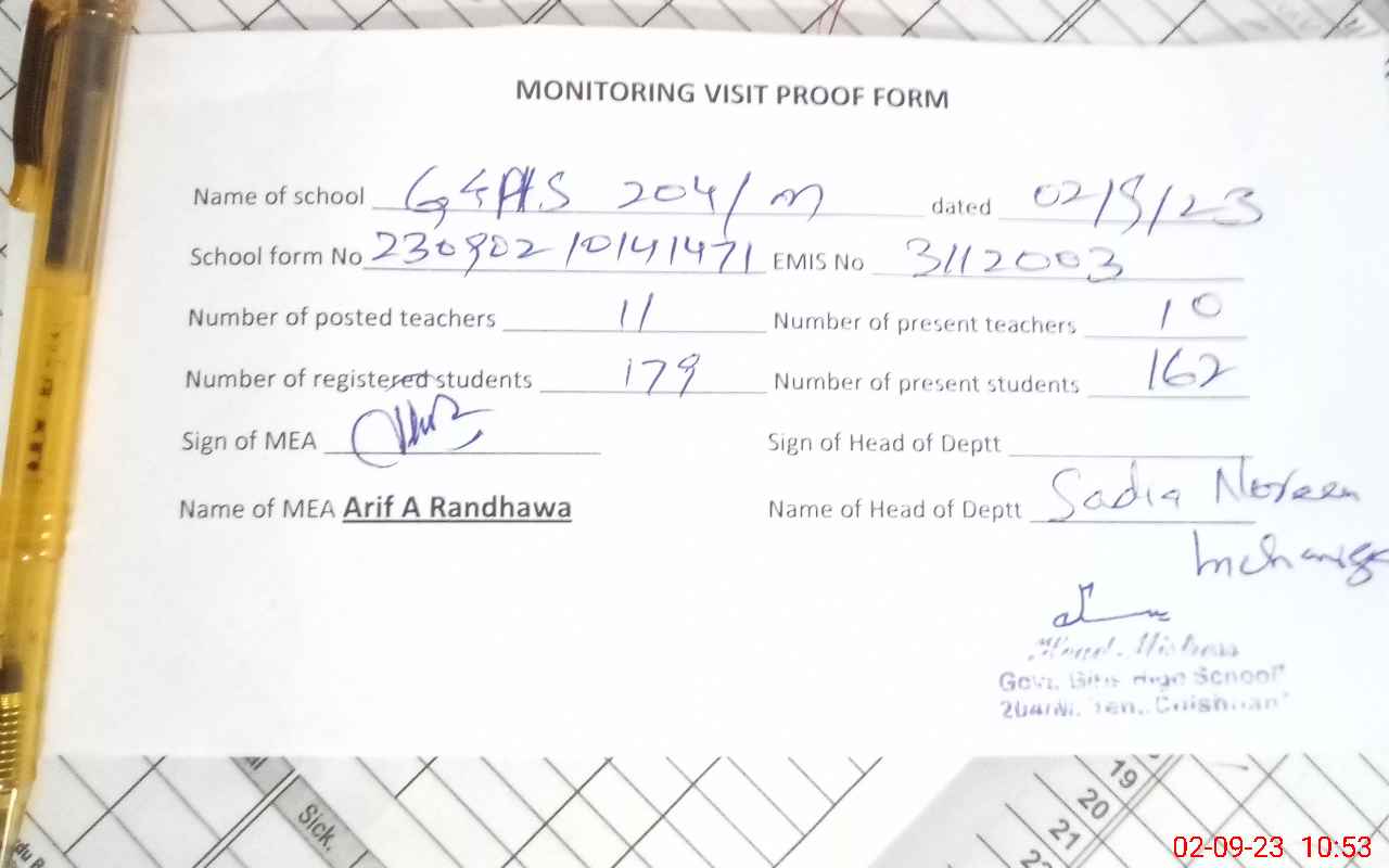 | EMIS Code: 31120043 | Name of School: GGHS CHAK NO. 204/M (WEST) | |||