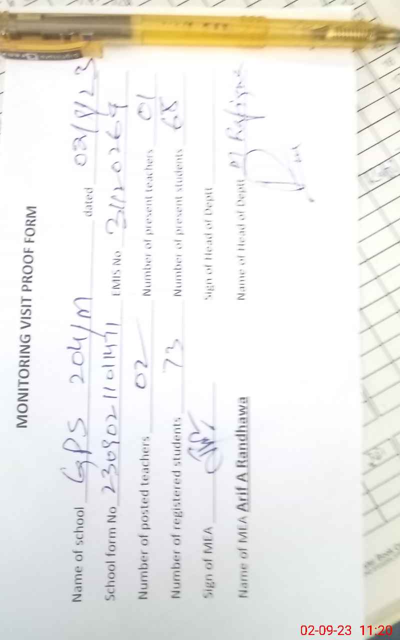 | EMIS Code: 31120269 | Name of School: GPS CHAK NO 204/M W | |||