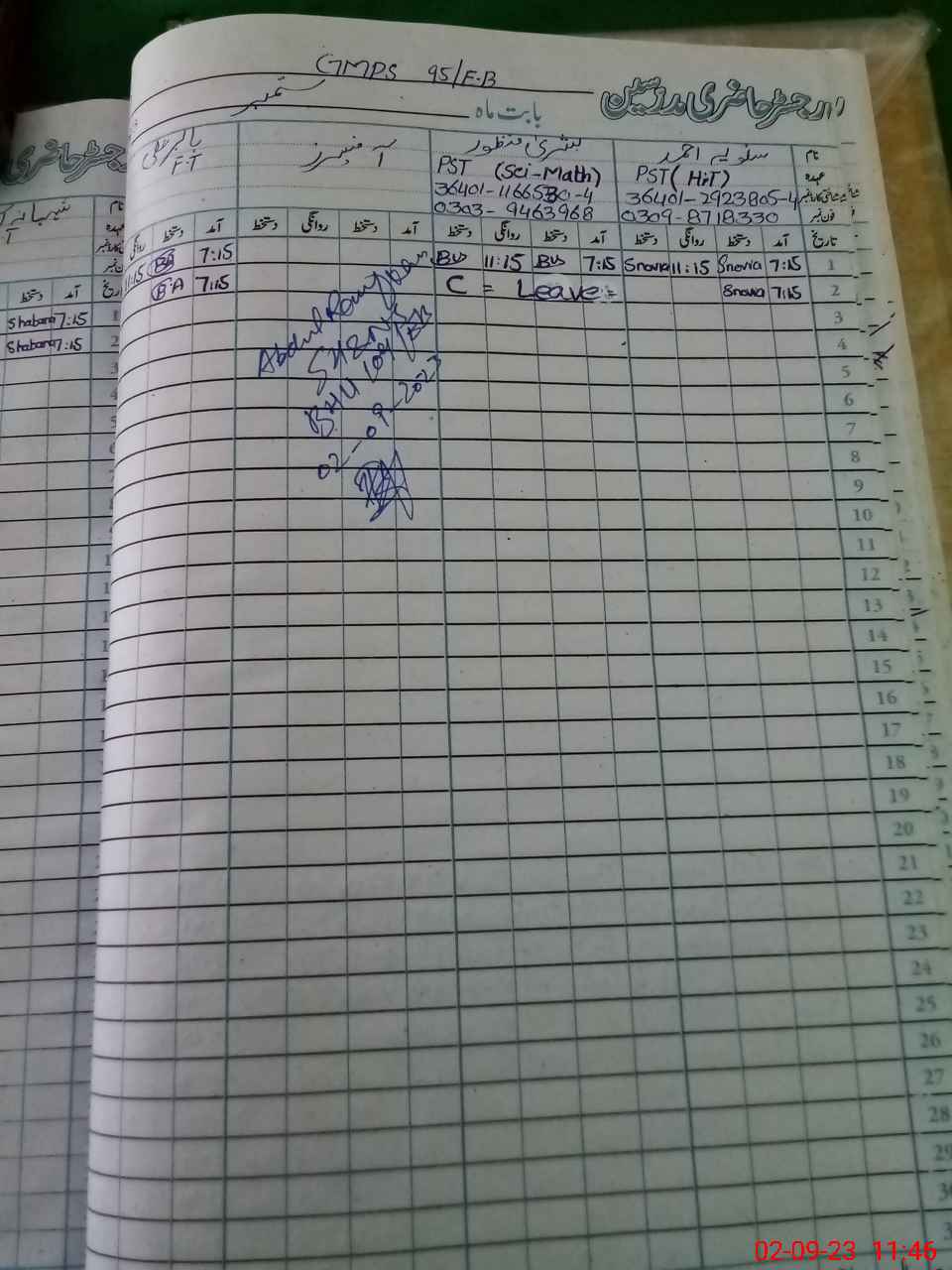 | Name: BU**** MA**** Designation: (School Headmaster's/Headmistress's) PST Phone/Cell Number: 03**** |