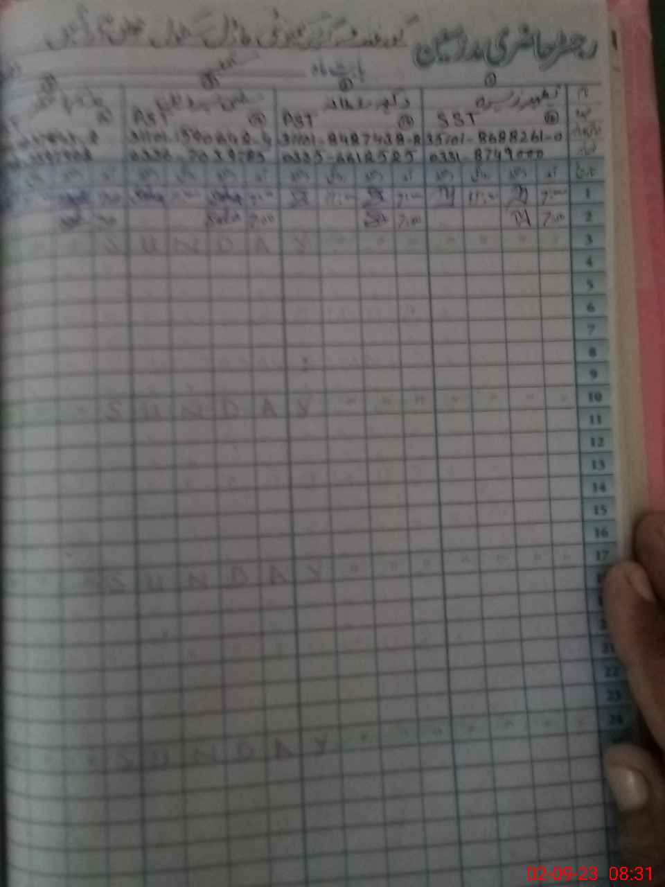 | Name: TA**** ZO**** Designation: (School Headmaster's/Headmistress's) S.S.T.(General) Phone/Cell Number: 03**** |