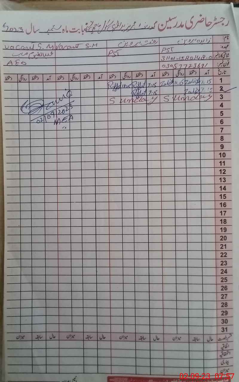 | Name: ZA**** PE**** Designation: (School Headmaster's/Headmistress's) PST Phone/Cell Number: 03**** |