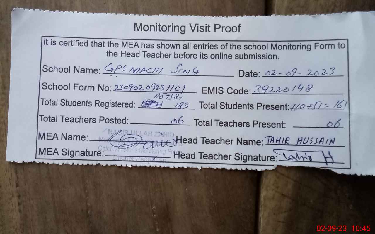 | EMIS Code: 39220148 | Name of School: GPS MACHHI SINGH | |||