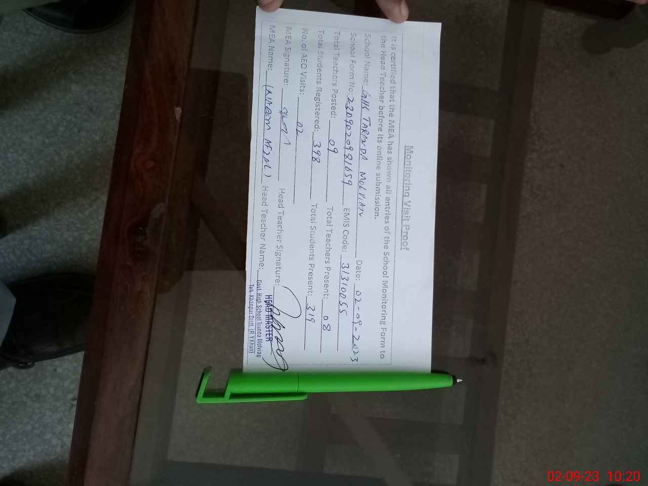 | EMIS Code: 31310055 | Name of School: GHS TARANDA MOULVIAN | |||