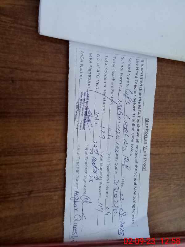 | Certified that this School was Inspected by the Undersigned MEA/DMO Today and the Information Stated Above is as Per Record. | |||||