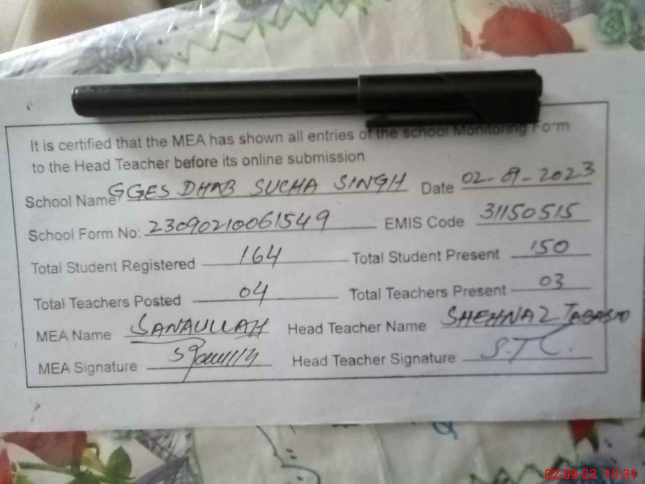 | EMIS Code: 31150515 | Name of School: GGES DHAB SUCHA SINGH | |||