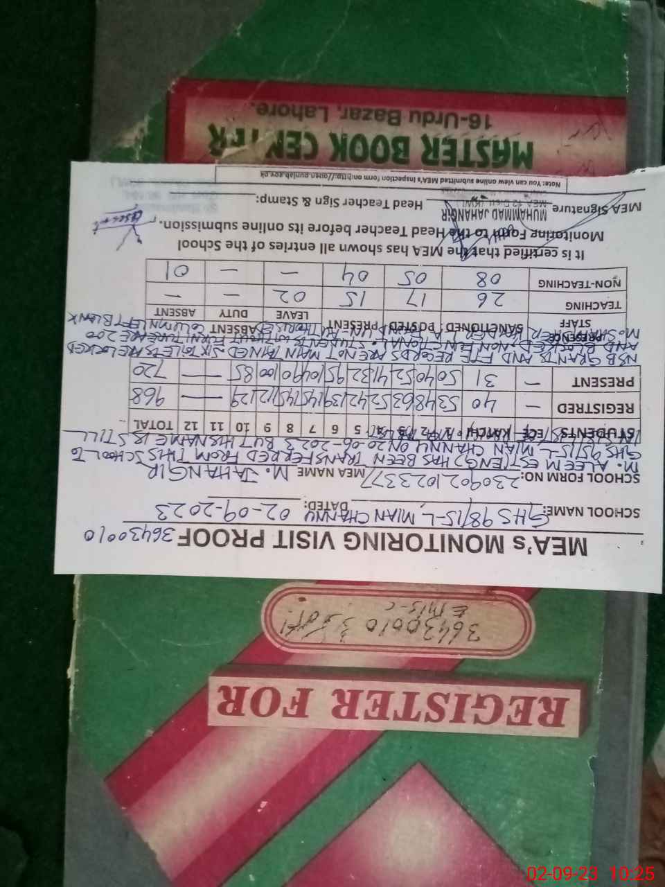 | Attendance Register | Head Teacher | MEA with School | Visit Proof |