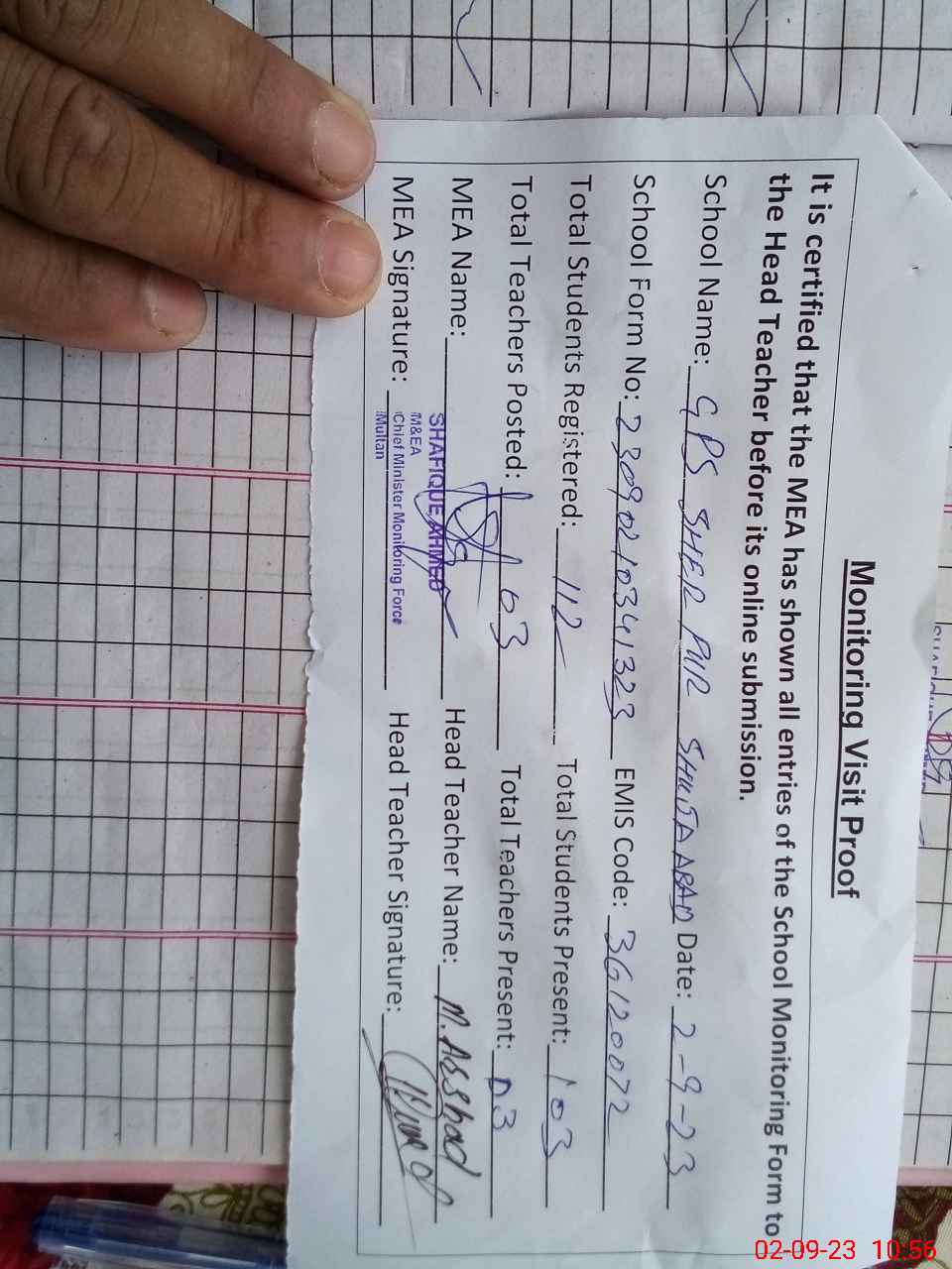 | EMIS Code: 36120072 | Name of School: GPS SHER PUR P/O & TEH SHUJABAD | |||