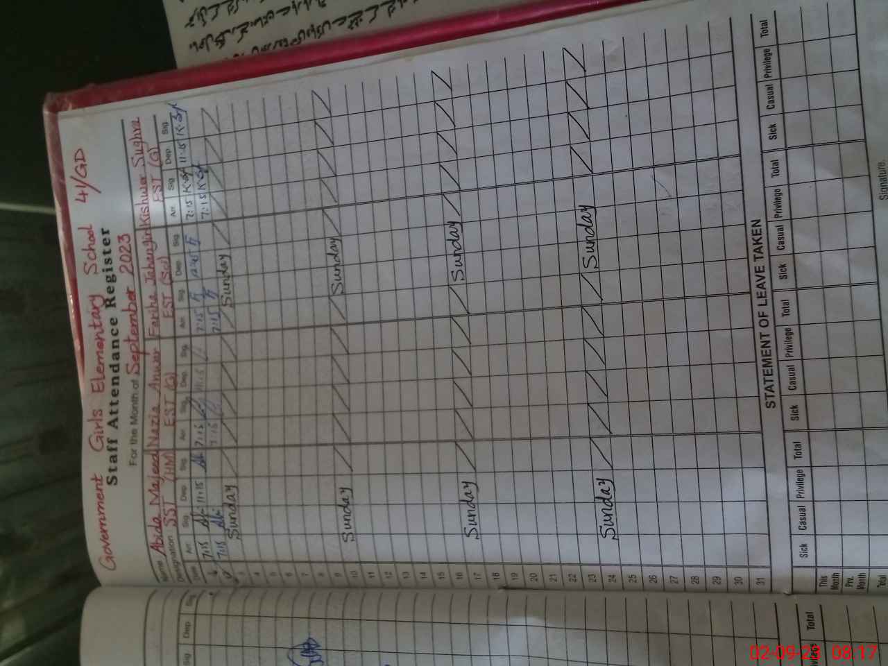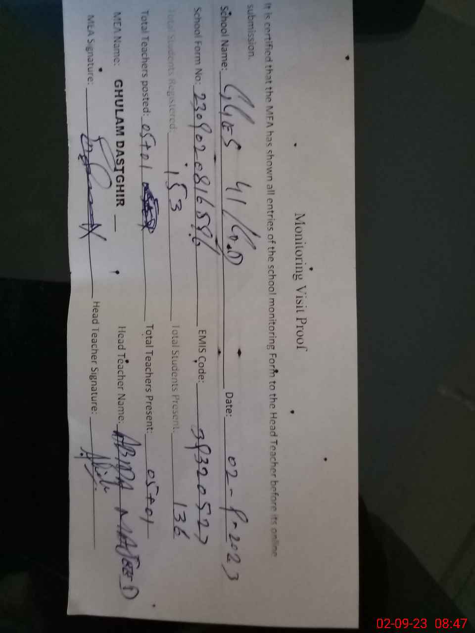 | Attendance Register | Head Teacher | MEA with School | Visit Proof |