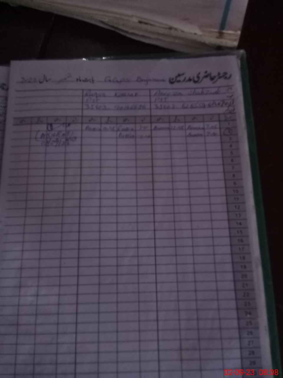 | CNIC | Full Name | Designation | R/C | Absence During Last Calender Month |