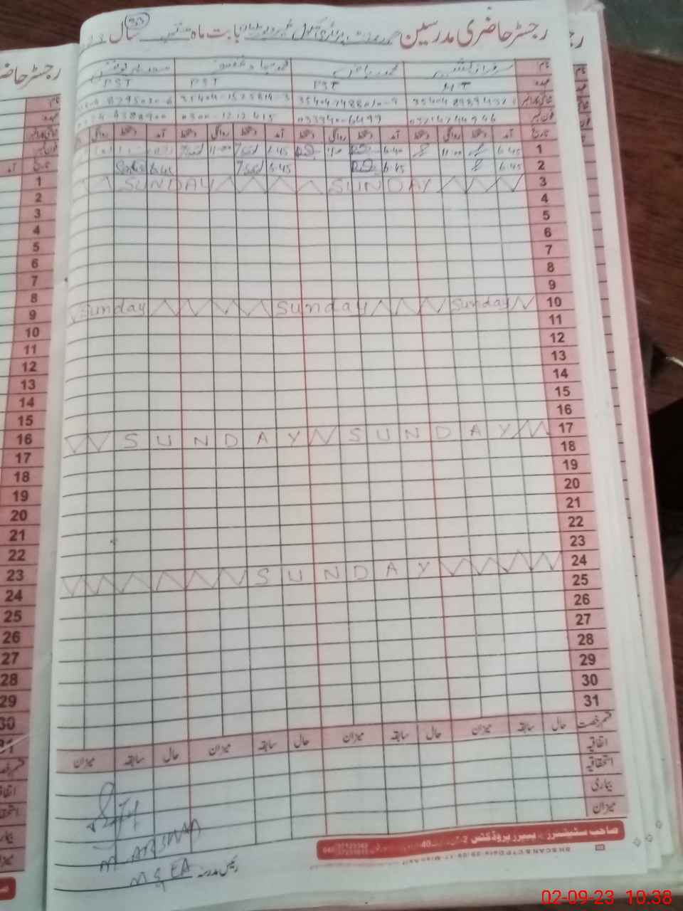 | CNIC | Full Name | Designation | R/C | Absence During Last Calender Month |