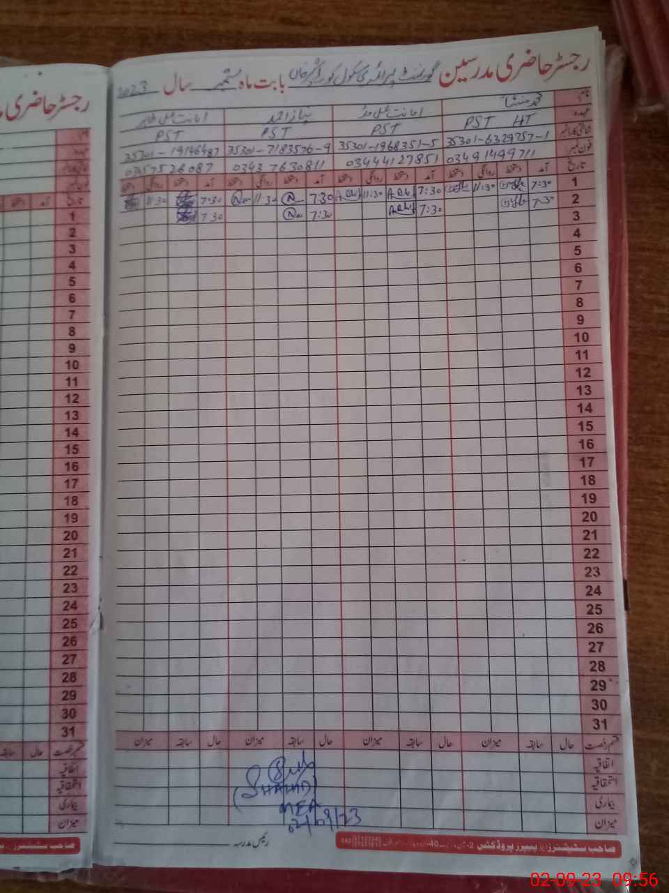 | Name: NI**** AH**** Designation: (School Headmaster's/Headmistress's) PST Phone/Cell Number: 03**** |