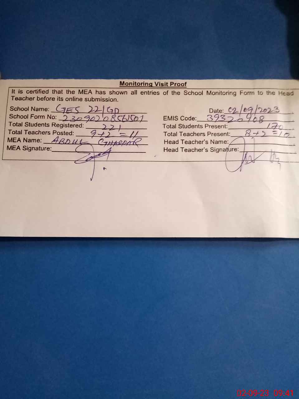 | EMIS Code: 39320408 | Name of School: GES CHAK NO. 22/G.D | |||