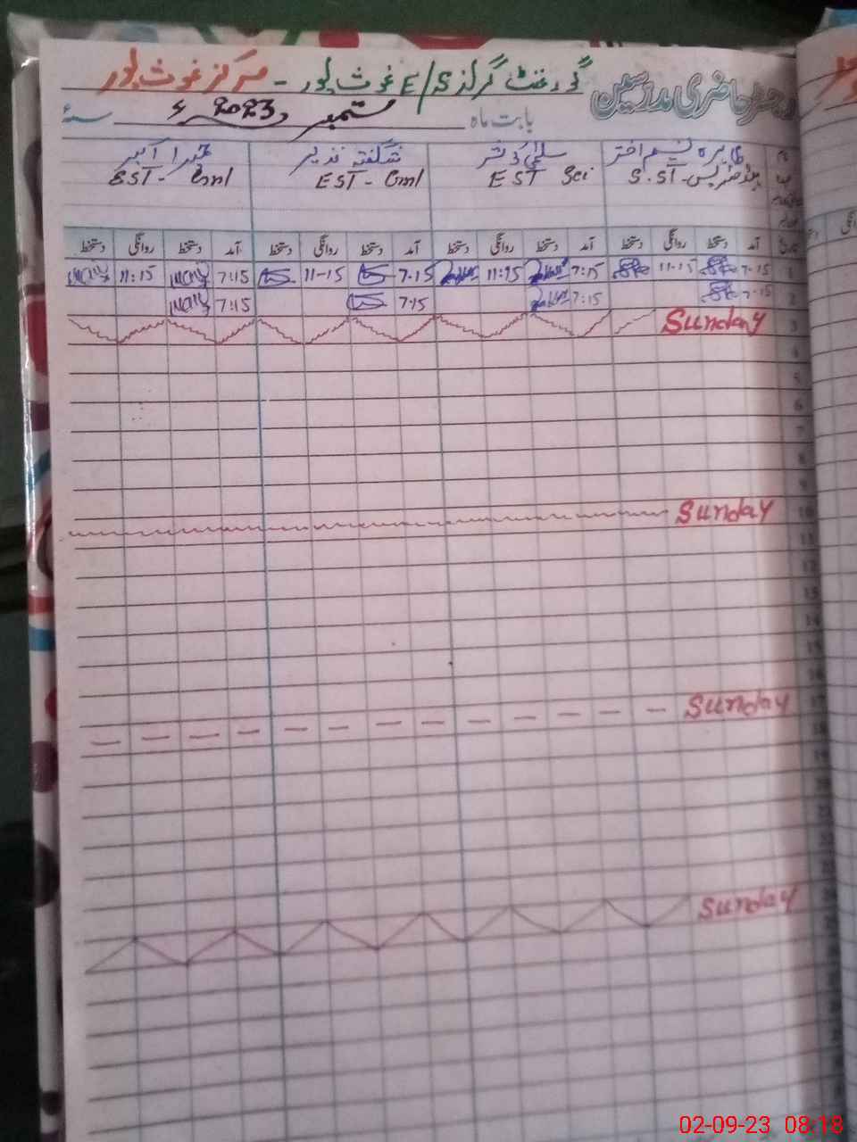| No. of Students Present - Female | 36 | 0 | 39 | 37 | 27 | 38 | 46 | 41 | 54 | 18 | 24 | 360 | ||||