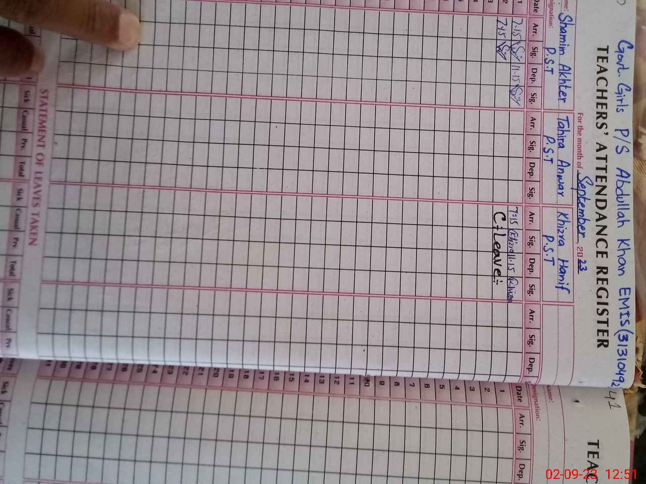 | Name: SH**** AK**** Designation: (School Headmaster's/Headmistress's) PST Phone/Cell Number: 03**** |