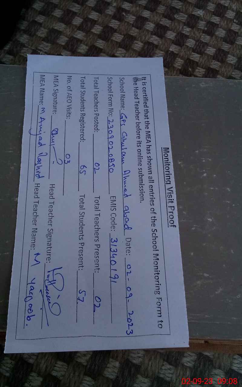 | EMIS Code: 31340191 | Name of School: GPS BASTI GHULAM AHMAD ABAD | |||