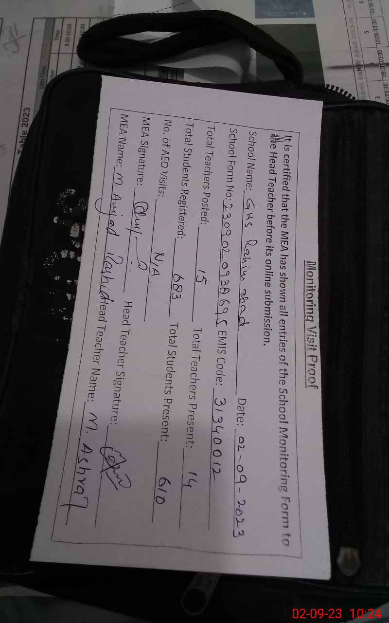 | EMIS Code: 31340012 | Name of School: GHS RAHEEM ABAD | |||