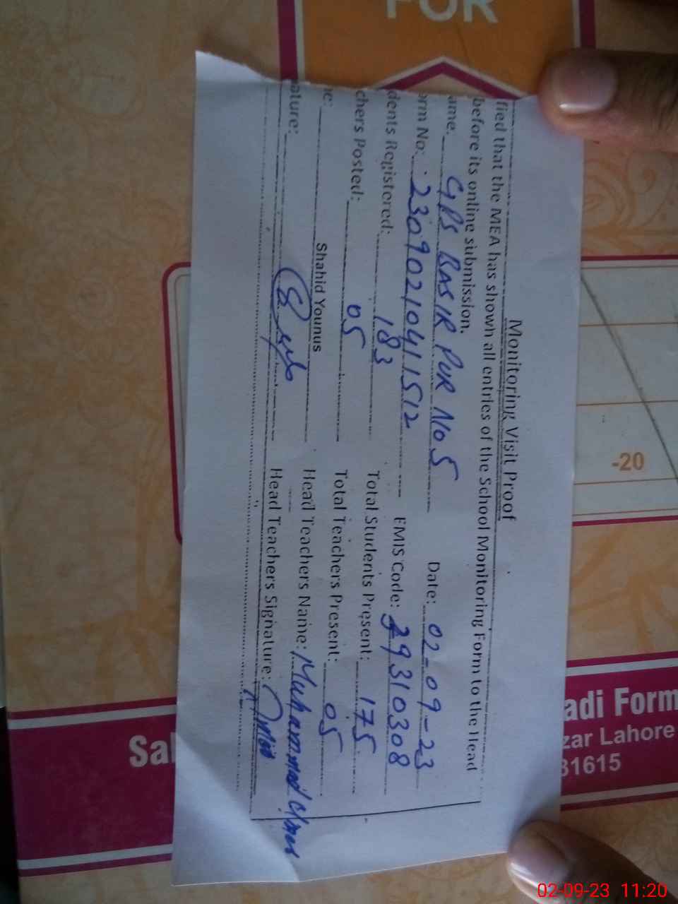 | EMIS Code: 39310308 | Name of School: GPS BASIR PUR NO 5 | |||