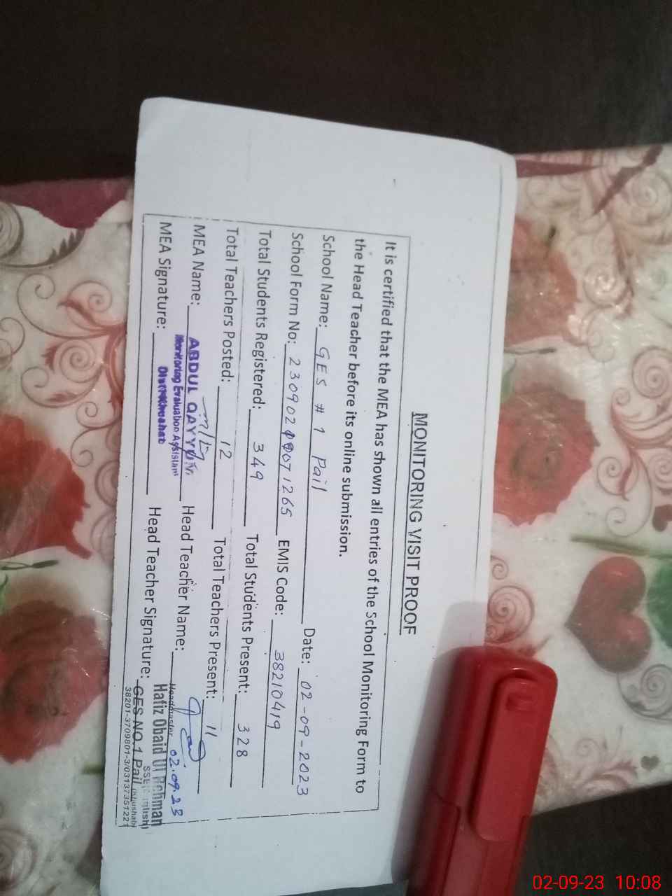 | Certified that this School was Inspected by the Undersigned MEA/DMO Today and the Information Stated Above is as Per Record. | |||||