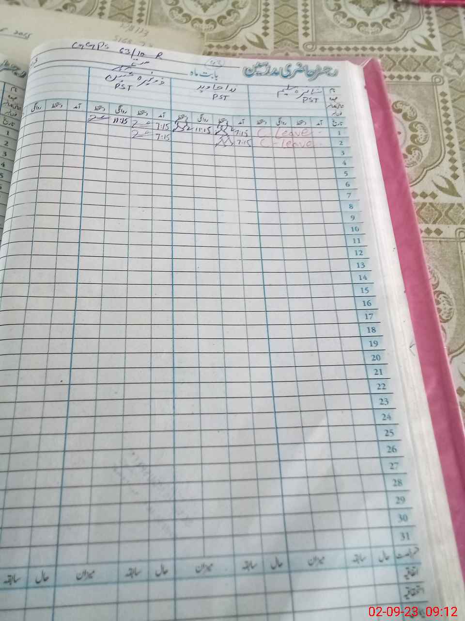 | CNIC | Full Name | Designation | R/C | Absence During Last Calender Month |