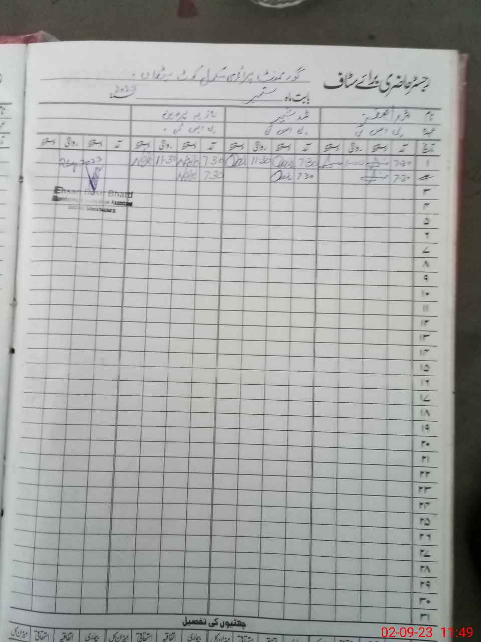 | Name: MU**** SH**** Designation: (School Headmaster's/Headmistress's) PST Phone/Cell Number: 03**** |