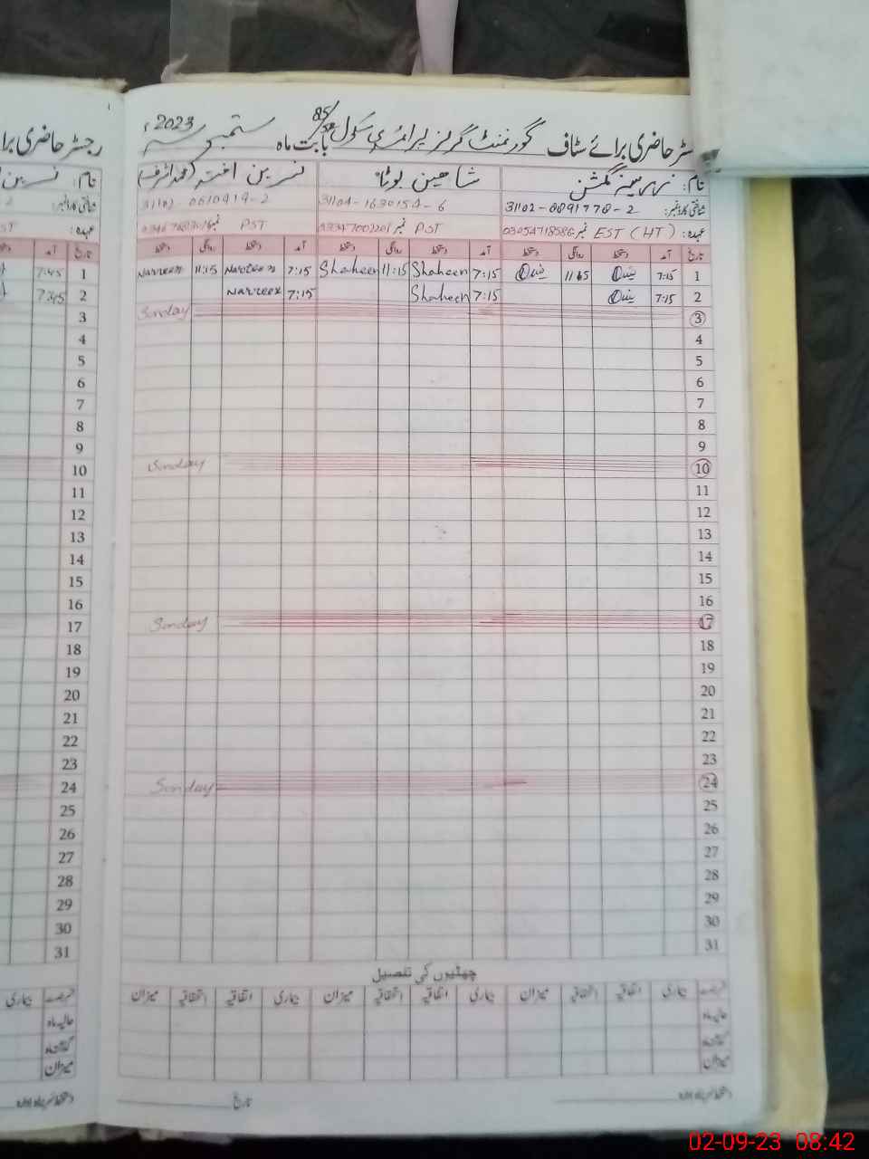 | Name: ZA**** GU**** Designation: (School Headmaster's/Headmistress's) EST G Phone/Cell Number: 03**** |