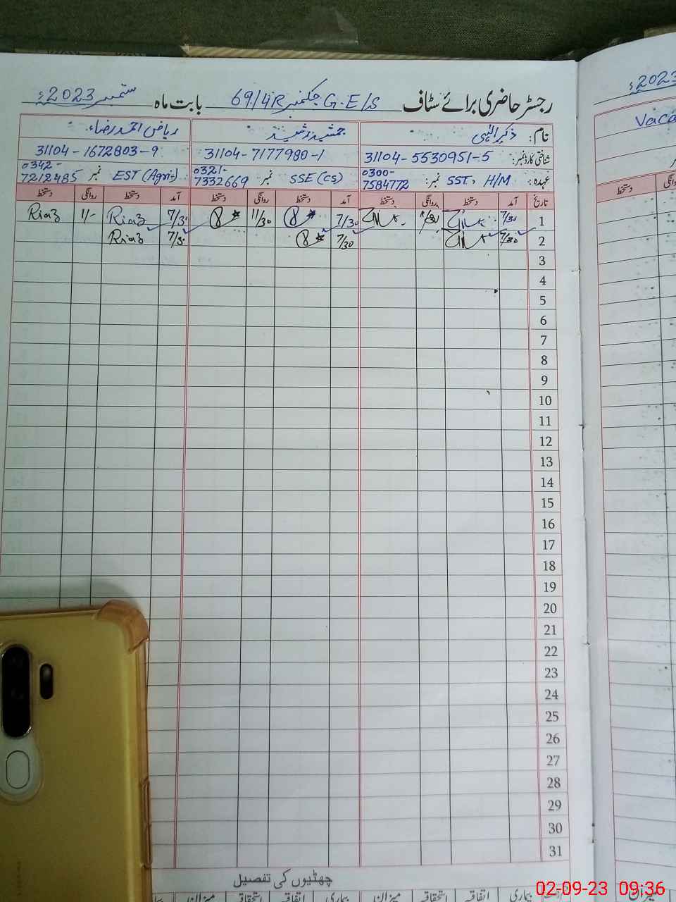 | Name: ZI**** EL**** Designation: (School Headmaster's/Headmistress's) S.S.T.(SC) Phone/Cell Number: 03**** |