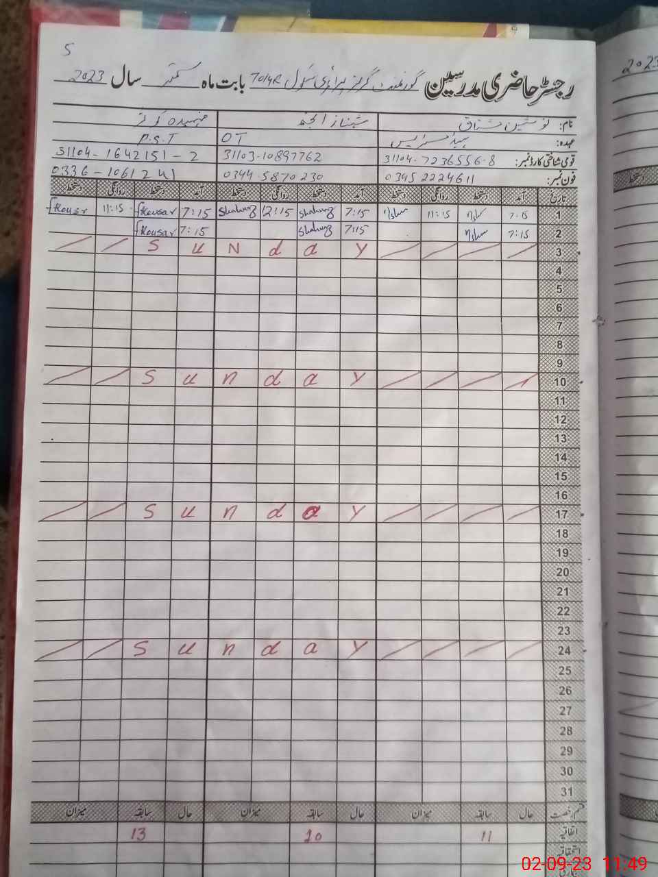 | Name: No**** Mu**** Designation: (School Headmaster's/Headmistress's) PST Phone/Cell Number: 03**** |
