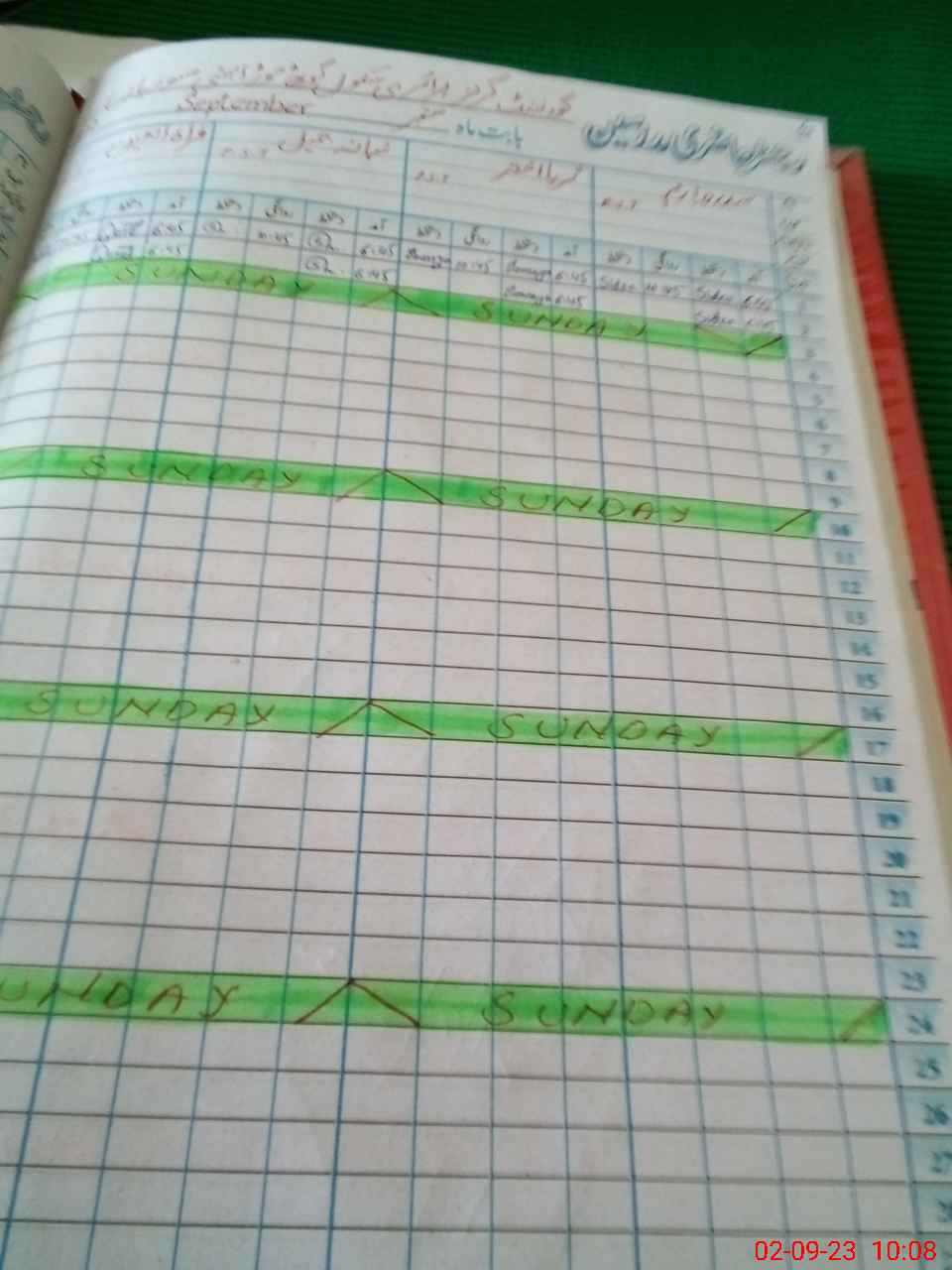 | No. of Students Present - Male | 0 | 0 | 0 | 2 | 1 | 2 | 5 | 5 | 15 | |||||||