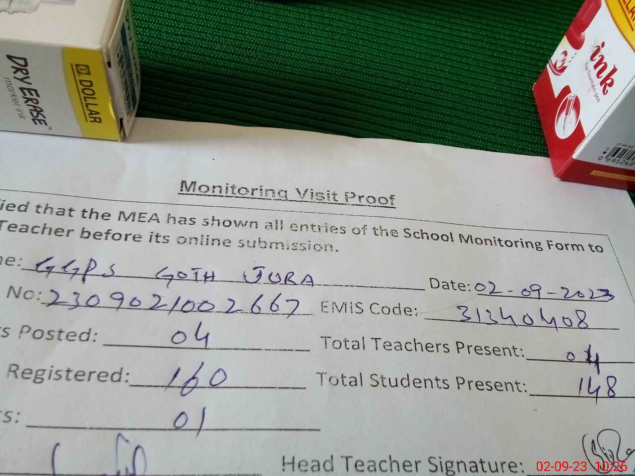 | Attendance Register | Head Teacher | MEA with School | Visit Proof |