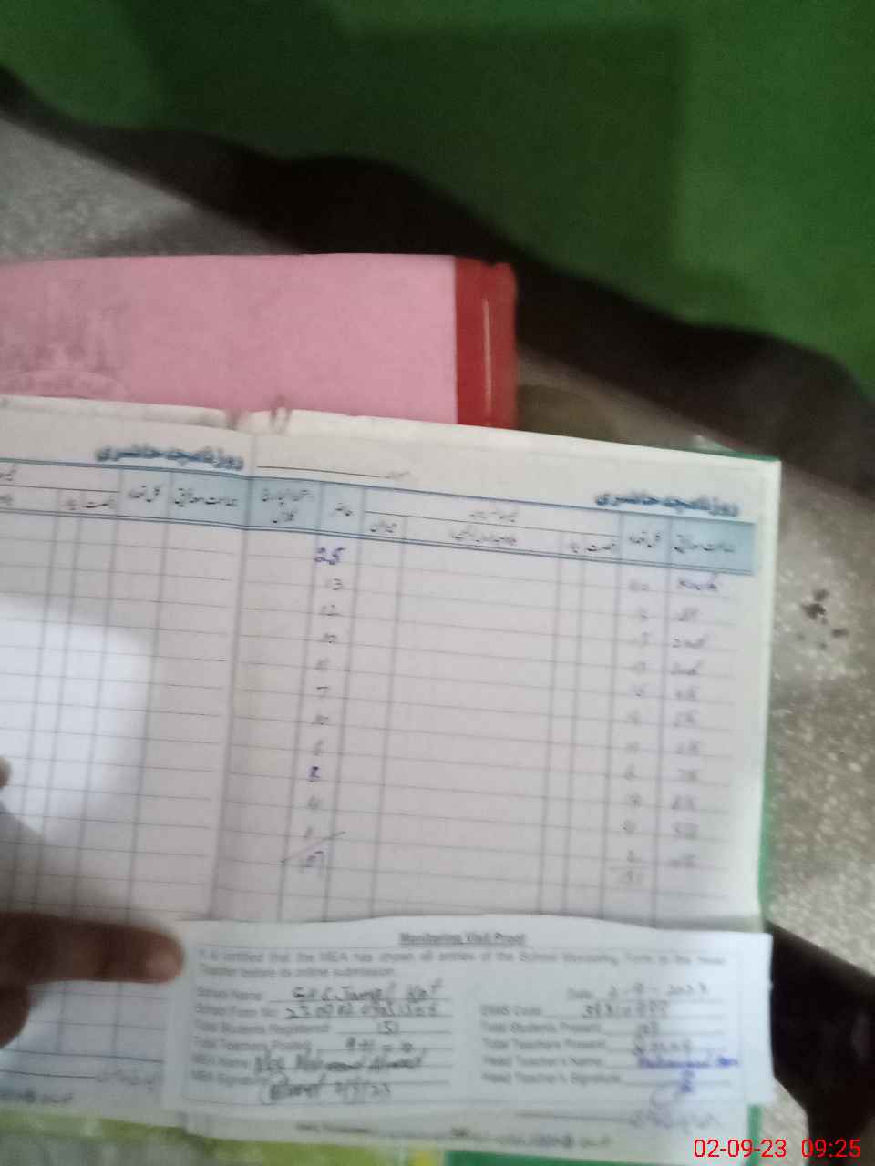 | Attendance Register | Head Teacher | MEA with School | Visit Proof |