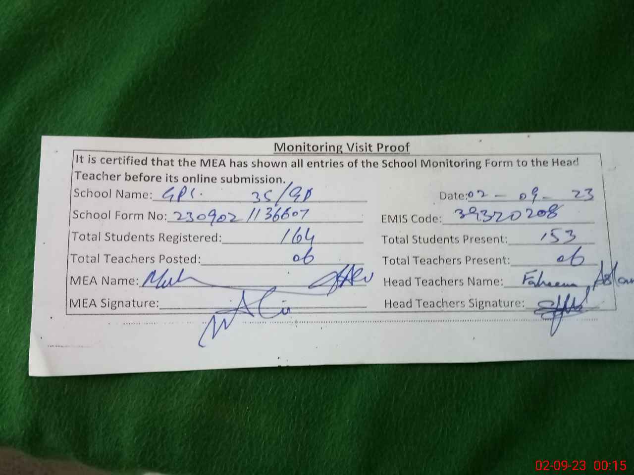| EMIS Code: 39320208 | Name of School: GPS CHAK 35/G.D | |||