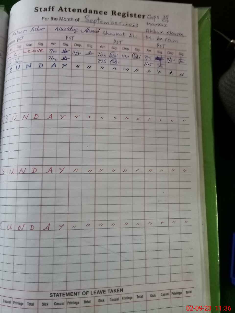 | Leave | Duty | Absent | Maternity | Medical | Ex- Pak |