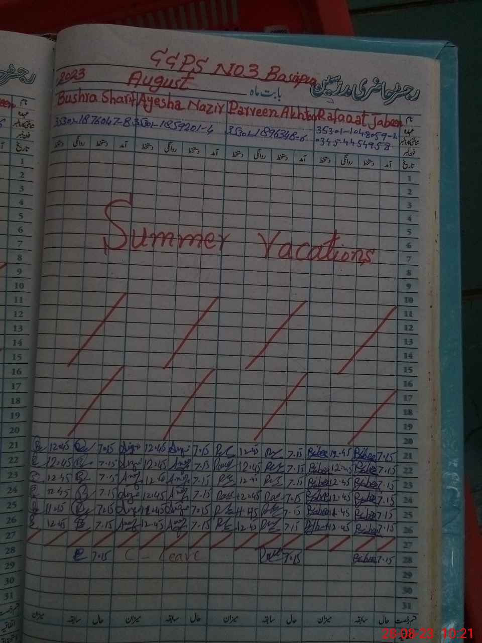 | 35**** | Ay**** Na**** | PST | Regular | 1 | 0 | 0 | 0 | 0 | 0 | 0 | 0 | 1 | Casual |