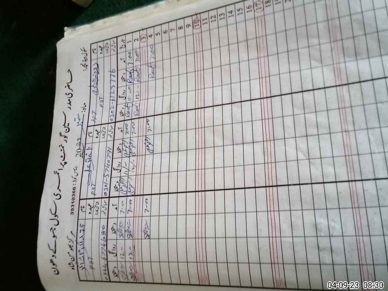 | Name: RA**** AL**** Designation: (School Headmaster's/Headmistress's) PST Phone/Cell Number: 03**** |