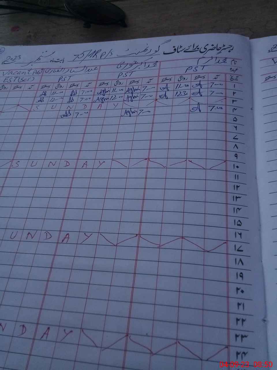 | CNIC | Full Name | Designation | R/C | Absence During Last Calender Month |