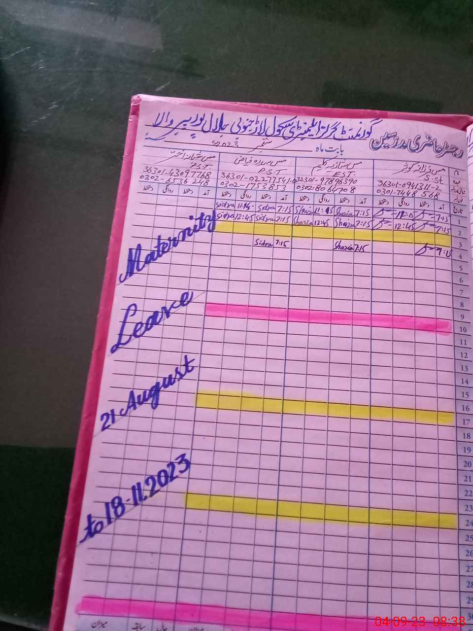 | 36**** | Sh**** Ak**** | PST | Regular | 31 | 0 | 0 | 31 | 0 | 0 | 0 | 0 | 0 | Maternity |