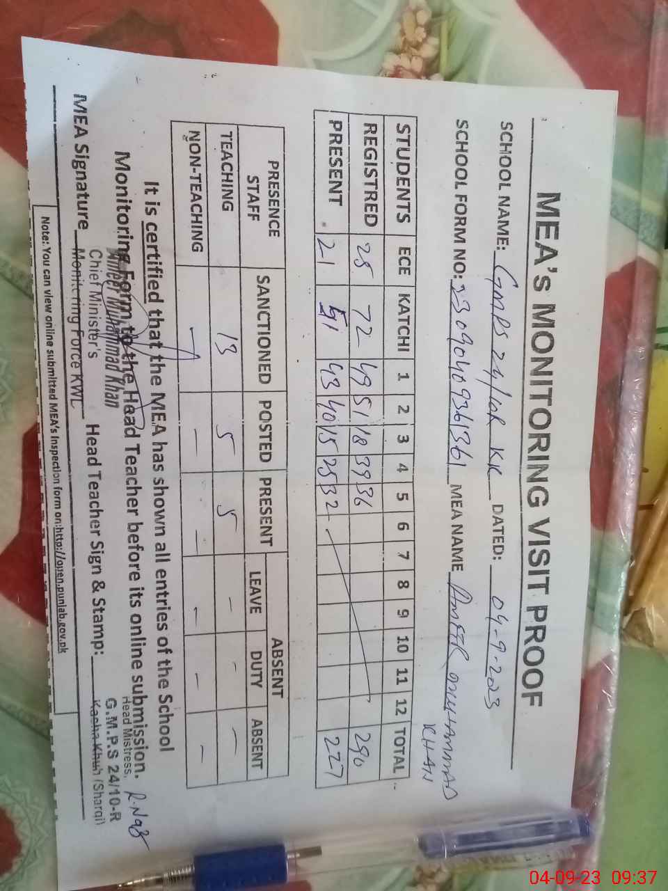 | EMIS Code: 36420441 | Name of School: GMPS 24/10-R, KACHA KHUH | |||