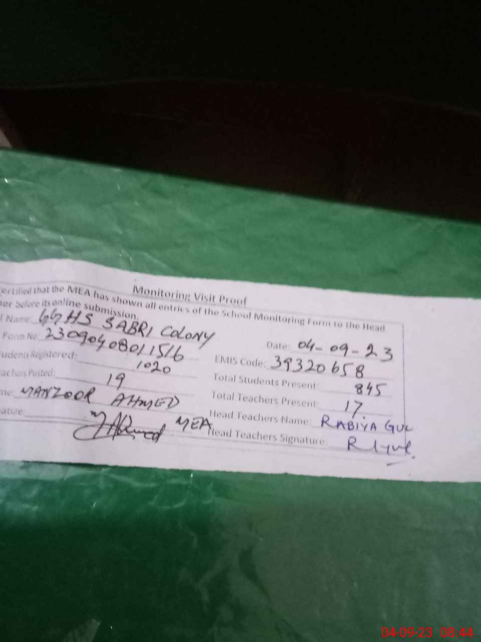 | EMIS Code: 39320658 | Name of School: GGHS SABRI COLONY | |||