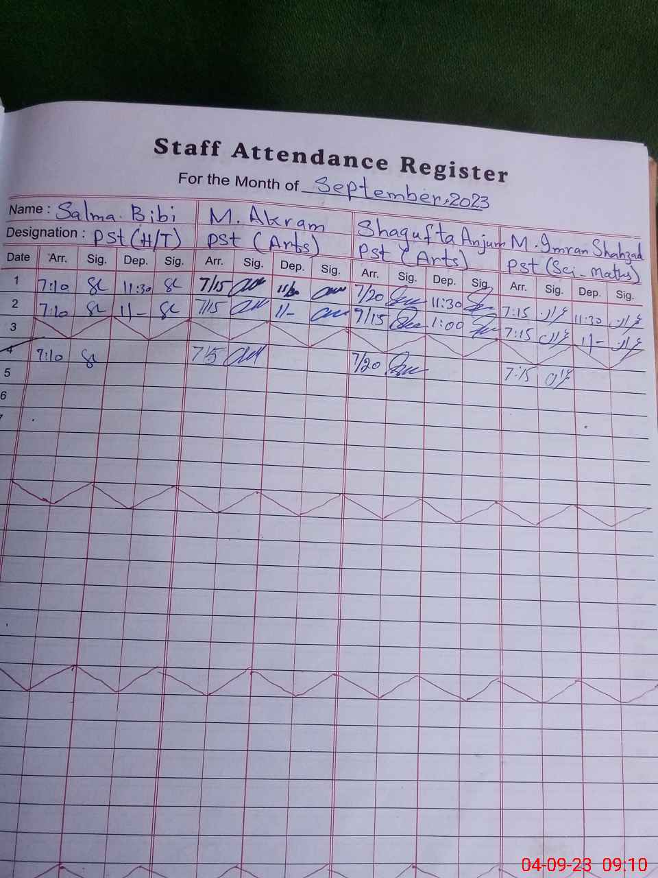 | Name: Sh**** An**** Designation: (School Headmaster's/Headmistress's) PST Phone/Cell Number: 03**** |