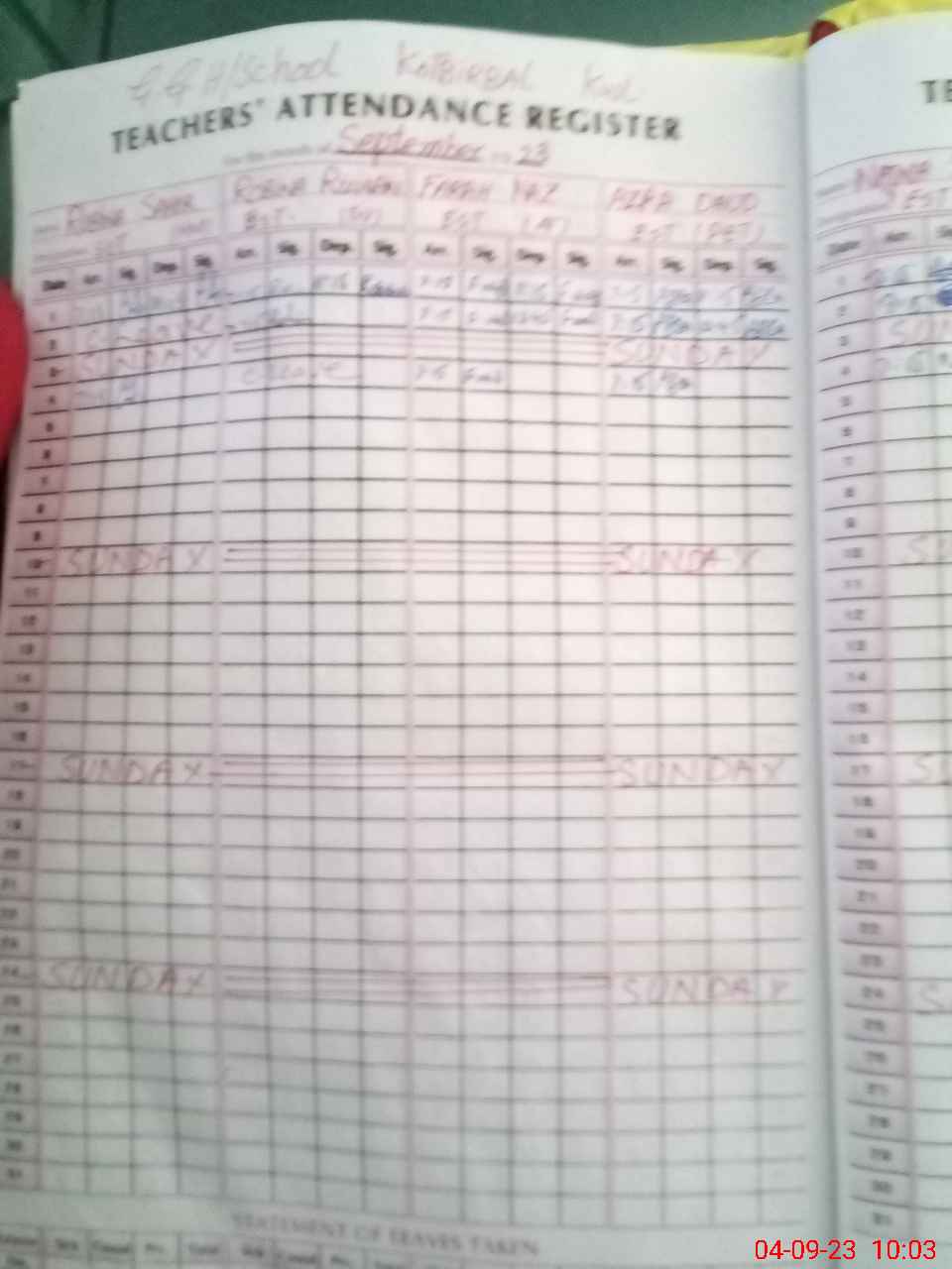 | Remarks (Use Separate Page if Required): 03 teachers named 1 Pst Mudasara Rashid 2 Kiswar Sultan 3 Sumara Latif present in the school but their names are not in monitoring app | |||||